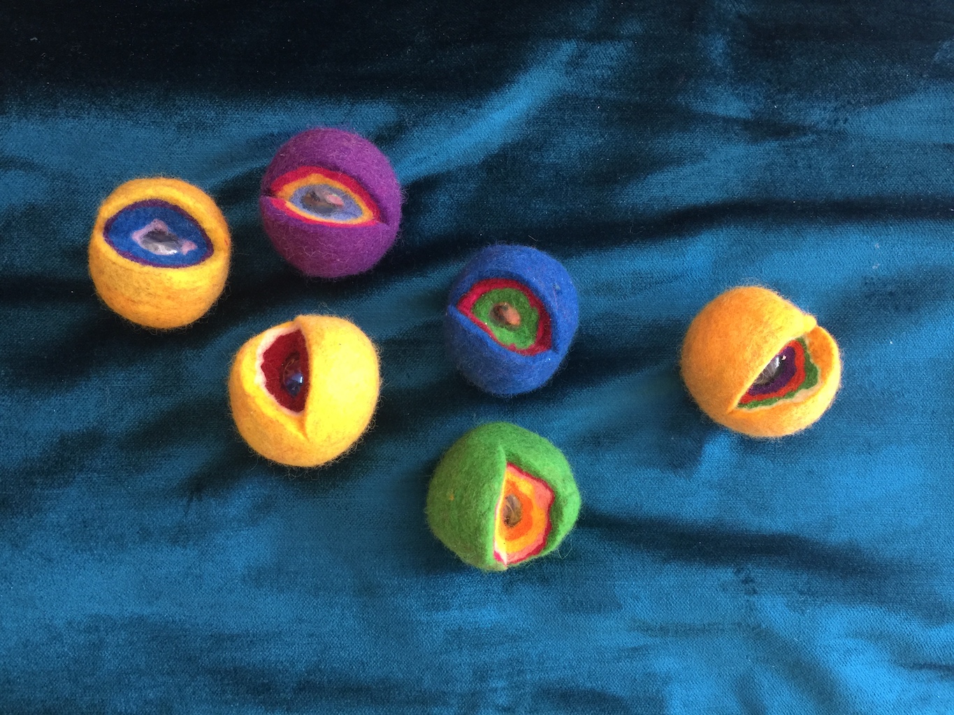 In diesem Filz-Workshop für Einsteiger werden verschiedene Kleinigkeiten, wie zum Beispiel ein “Drachenauge” oder ein Windlicht, aus Merinowolle gefilzt.